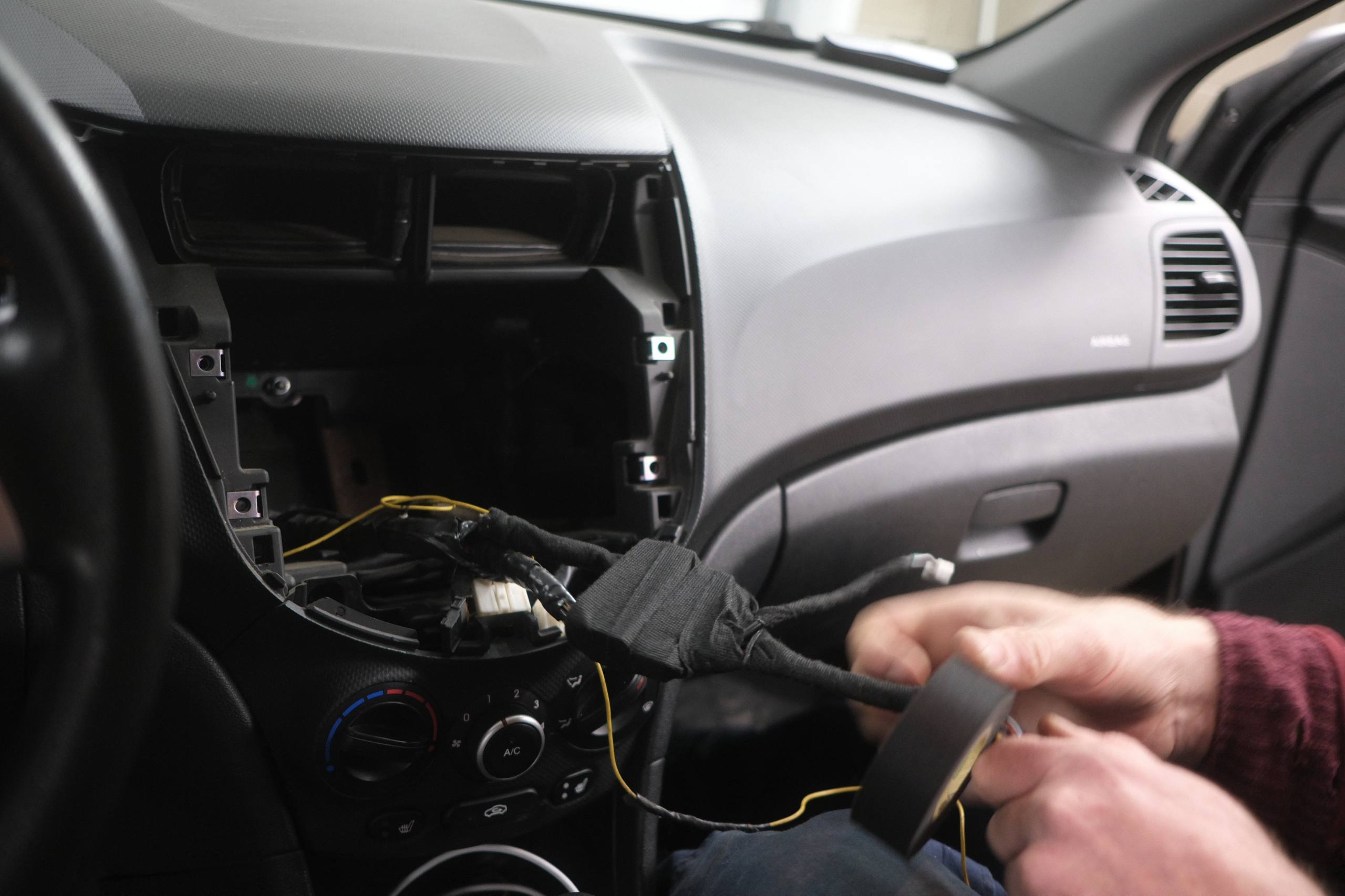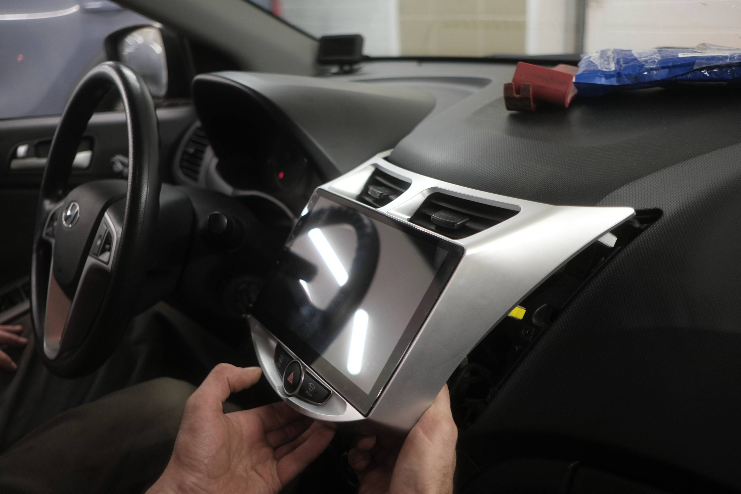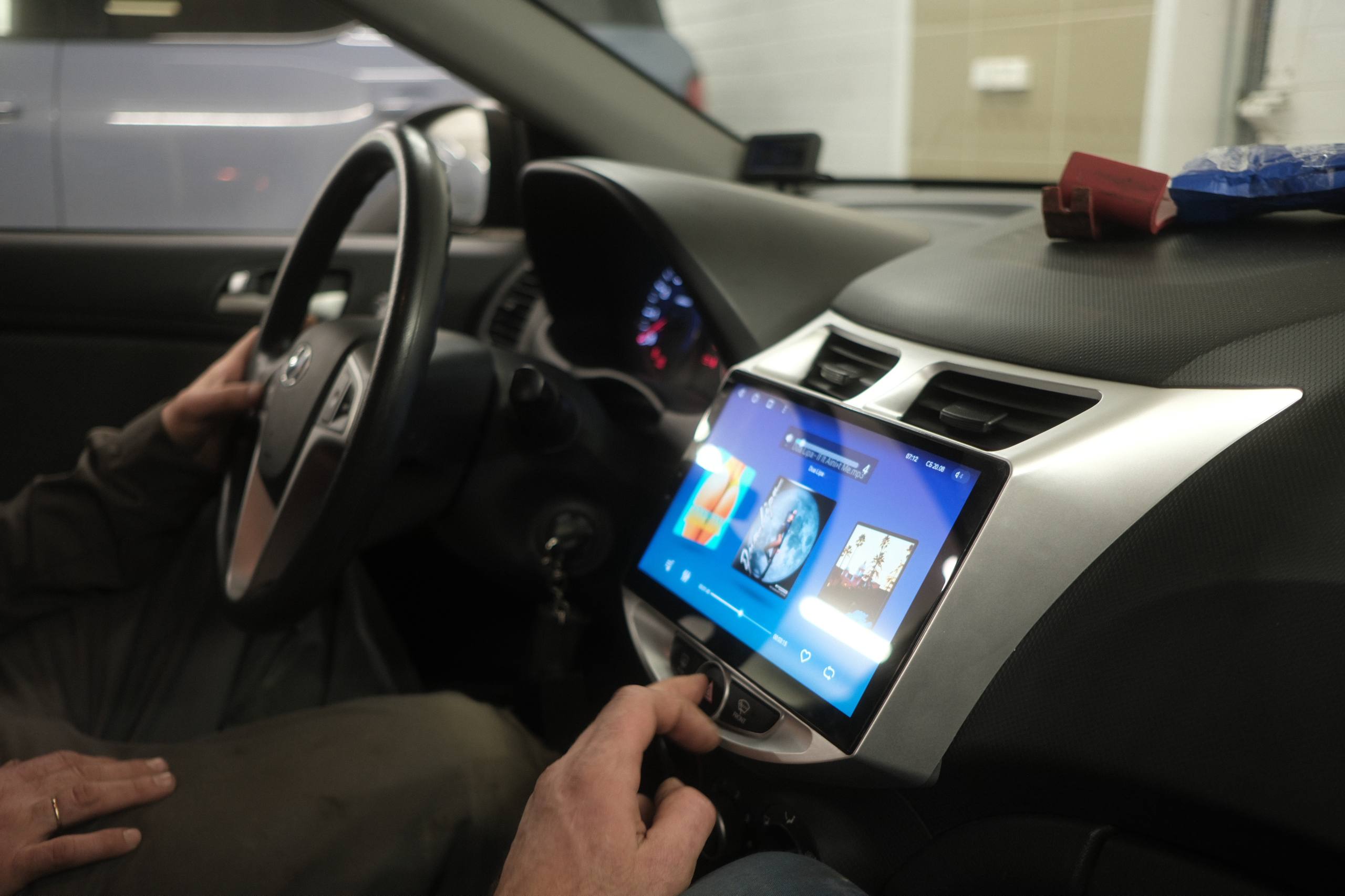 На установку к нам приехал Hyundai Solaris. Владельцу откровенно надоело слушать музыку через USB-кабель, а после обновления смартфона и тот перестал работать.